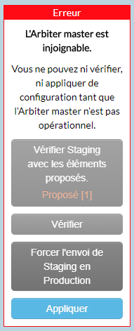 Le bouton "Vérifier Staging avec les éléments proposés" permet de vérifier la configuration en prenant en compte les éléments proposés depuis la zone de travail.
