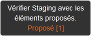 | Ce bouton permet de vérifier la configuration des éléments dans Staging et des éléments de la Zone de travail qui sont proposés. Ce bouton est activé que lorsqu'il y a des éléments proposés. |