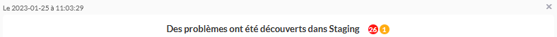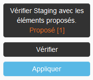 | Ce bouton permet de vérifier la configuration des éléments dans Staging. Ce bouton est activé que lorsqu'il y a des changements à appliquer en Production. |