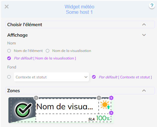 ) disponible en mode édition ( voir la page Édition visuelle - Météo ) sur les widgets permet d'accéder à l'interface de configuration des widgets.