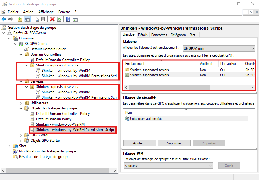 • Une fois crée, Cliquer-Glisser votre GPO dans les UOs de vos serveurs à superviser précédemment créés.