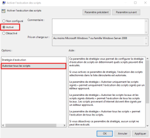• Double-Clic sur "Activer l'exécution des scripts", une nouvelle fenêtre s'ouvre