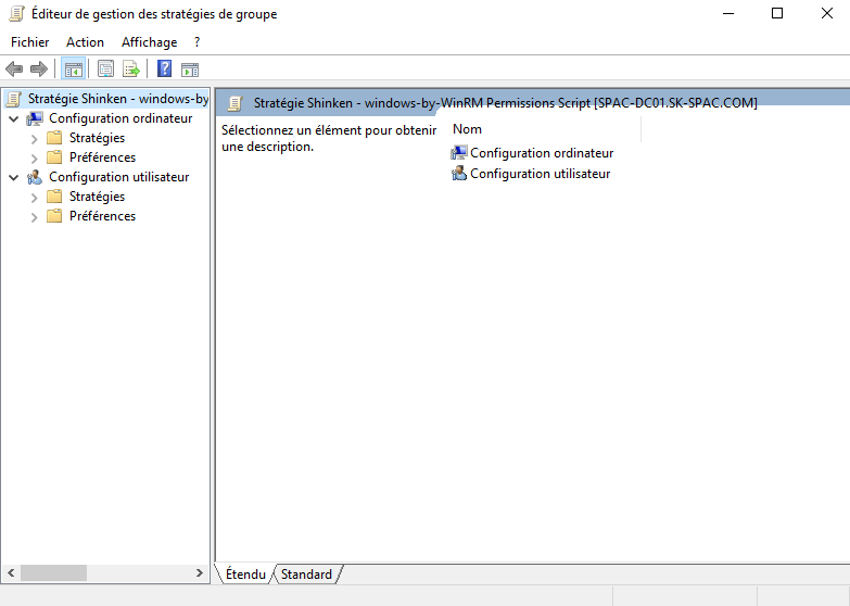 La dernière étape de la configuration est d'accrocher deux scripts à une nouvelle GPO qui va les déployer.