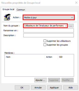 • Répéter l'opération pour le groupe "Utilisateur de l'Analyseur de performance".