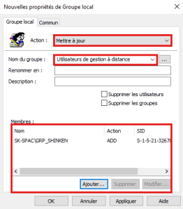 • Répéter l'opération pour le groupe "Utilisateurs de gestion à distance"