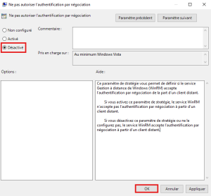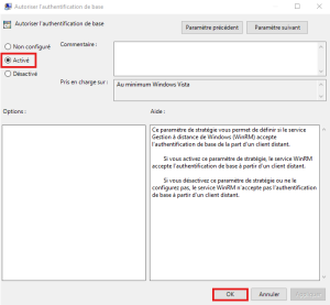 • Double-Clic sur "Autoriser la gestion de serveurs à distance via WinRM", une nouvelle fenêtre s'ouvre