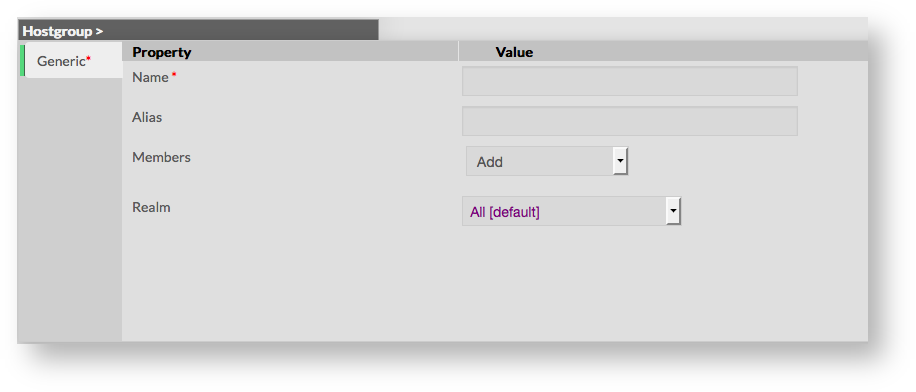 Apparaît alors un formulaire de création d'un Groupe d'Hôtes Ce formulaire se compose d'un onglet contenant les champs suivants :